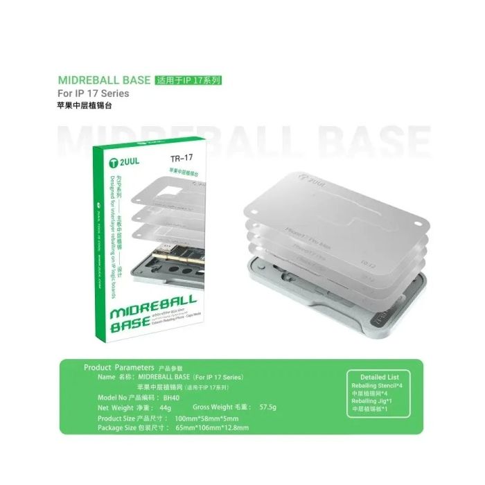 2uul BH40 Middle Layer BGA Reballing Stencil Platform Set for iPhone 17 / 17 Air / 17 Pro / 17Pro Max