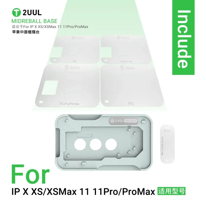 2uul BH41 Middle Layer BGA Reballing Stencil Platform Set for iPhone X / XS / XSM / 11 / 11P / 11PM