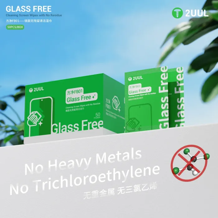 2uul FB01 Glass Free Cleaning Screen Wipes with No Residue - 50Pcs