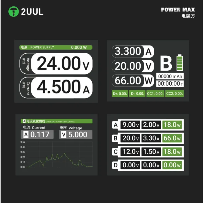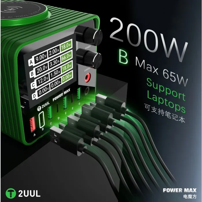2uul PC01 POWER MAX 200W Multi-Port Charger & Adjustable Voltage Power Supply