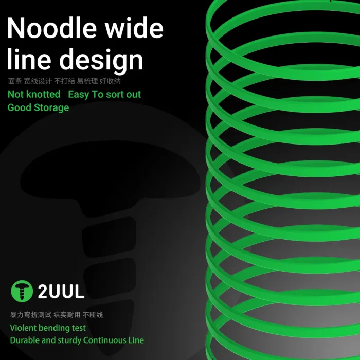 - Noodle wide line design, not knotted easy to sort out, good storage, violent bending test, durable and sturdy, continuous line