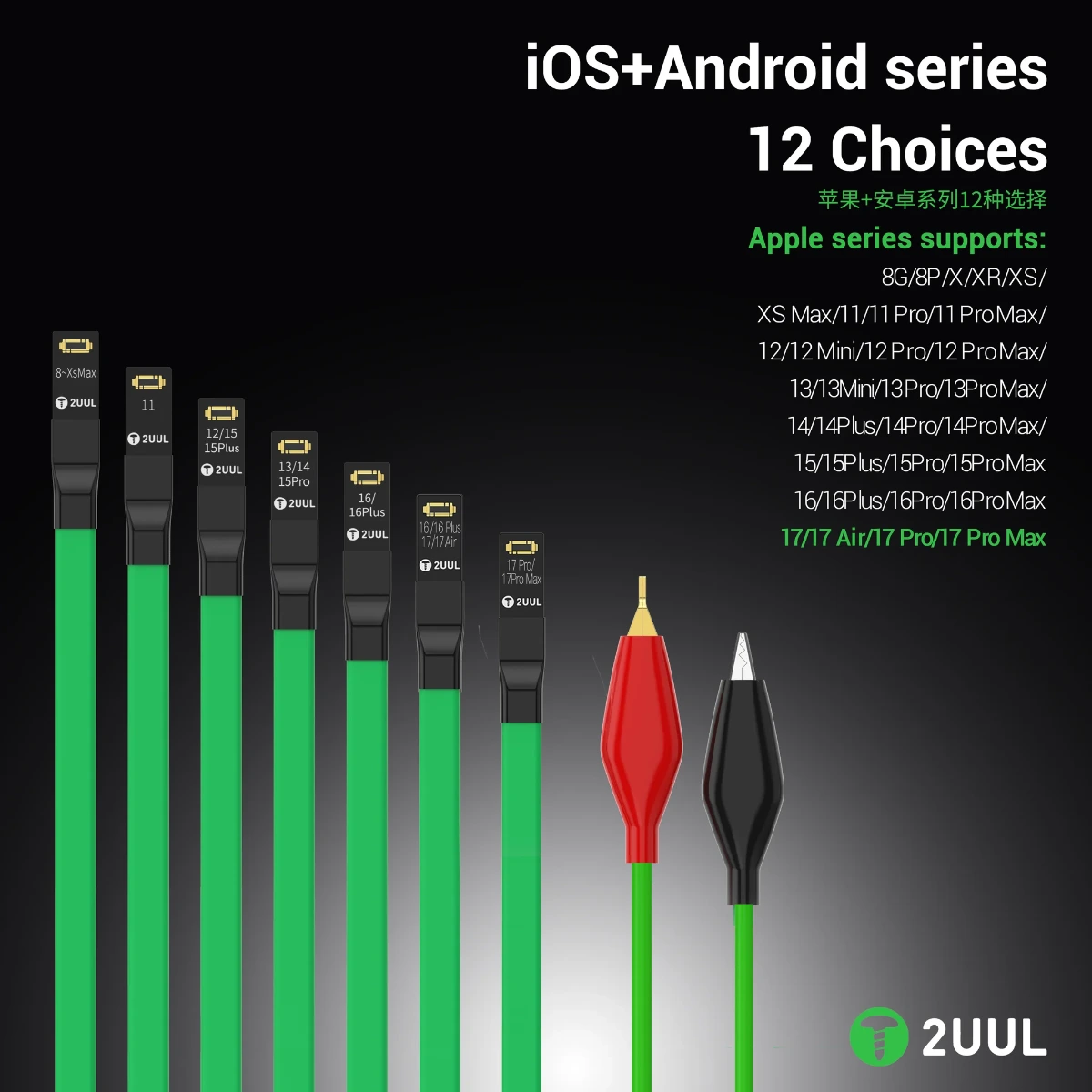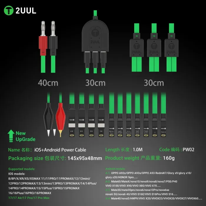 2uul PW02 Mobile Phone Repair Power Cable for iPhone 8 to 16PM & Android Phones