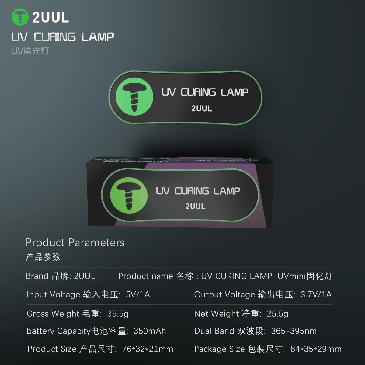 2uul SC08 365-395nm Dual Band Mini UV Curing Lamp for PCB Repair