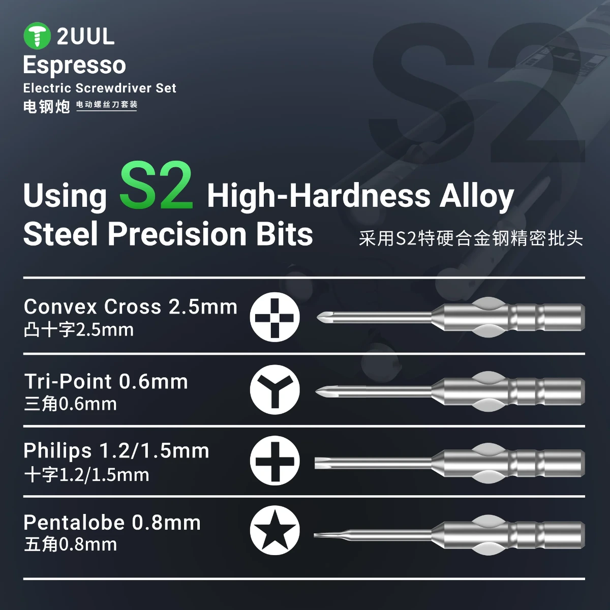 2uul SD11 Espresso Electric Screwdriver with 4Pcs S2 Bits for Mobile Phone Repair