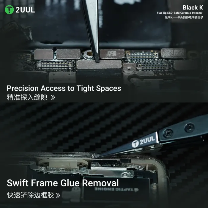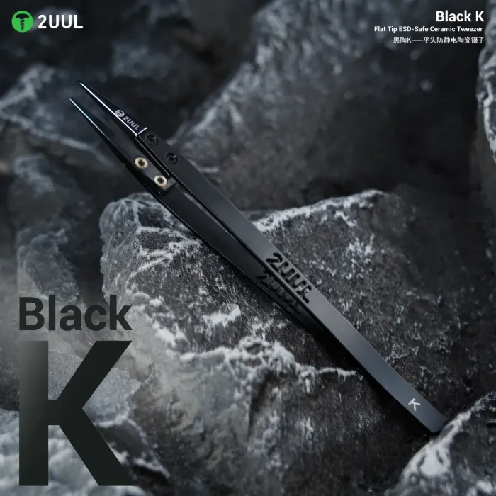 2uul TW32 Black K Flat Tip ESD-Safe Ceramic Tweezers