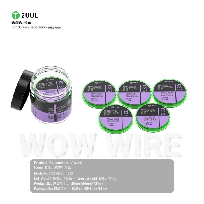 2UUL WS-035 tungsten sharp wire designed for precise mobile screen separation.