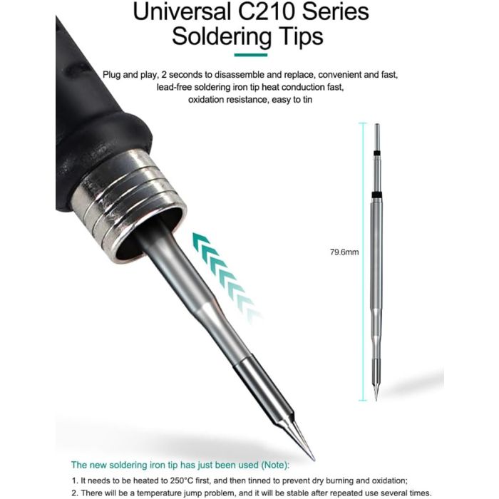 - Universal C210 Series Soldering Tips;Plug and play, 2 seconds to disassemble and replace