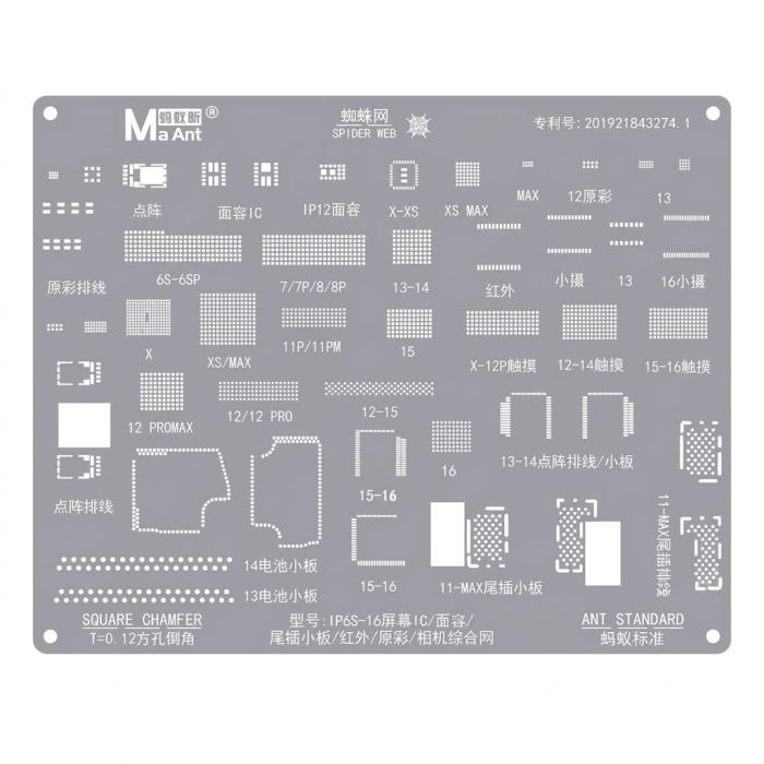 MaAnt 0.12mm Screen IC / Face / Tail Board / Infrared / True Color / Camera BGA Reballing Stencil for iPhone 6S to 16Pro Max