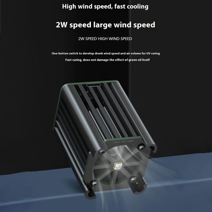- High wind speed, fast cooling, 2W speed high wind speed, one button switch for UV curing to develop superior wind speed and volume, curing fast, does not hurt the effect of green oil itself