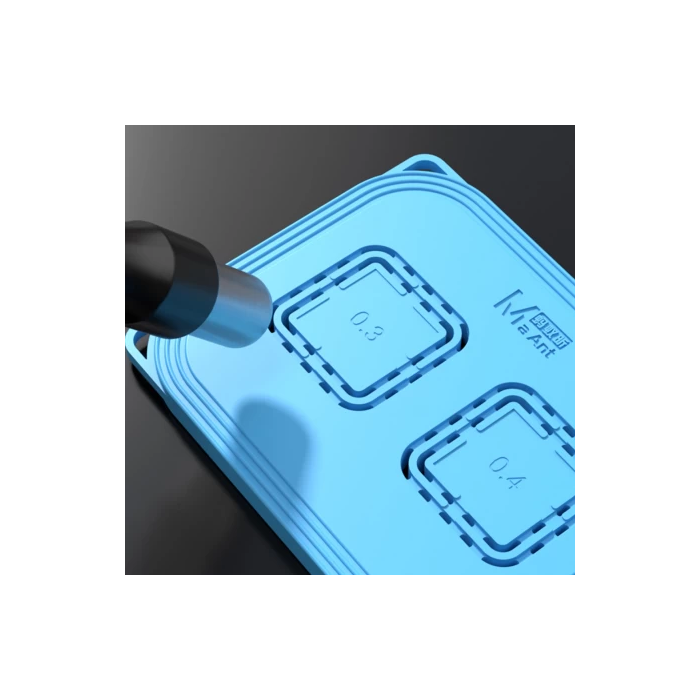 The MaAnt C03 is a silicone mat designed for electronics repair, especially BGA, CPU, and tin-planting work. It features magnetic adsorption to hold steel stencils or meshes firmly in place while soldering or reflowing. The mat is heat resistant, easy to clean, and includes heat-dissipation features to help maintain stable conditions during soldering