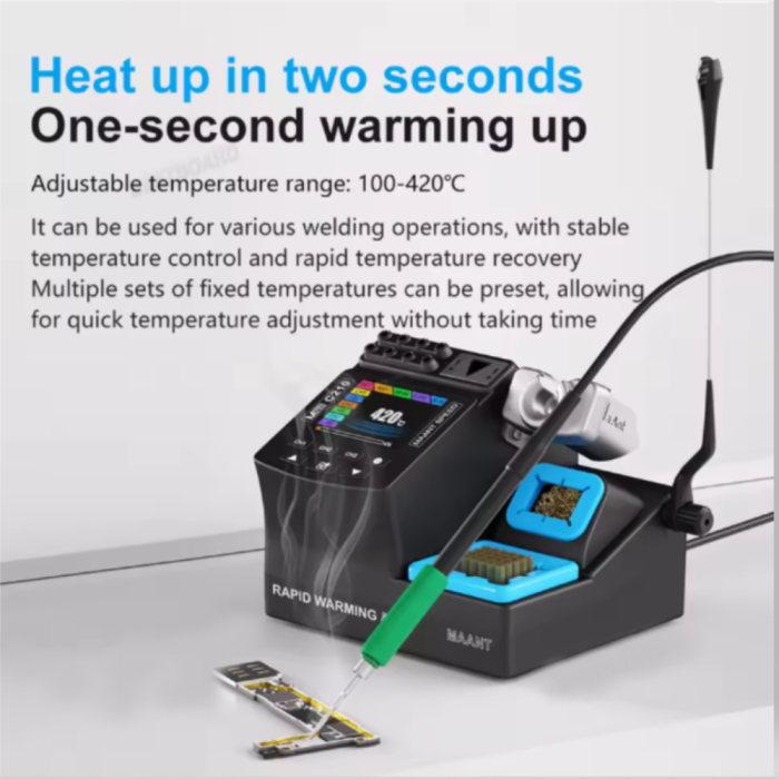 - Hot-swappable card slot, allowing for quick removal and installation of soldering iron tips, safe and efficient