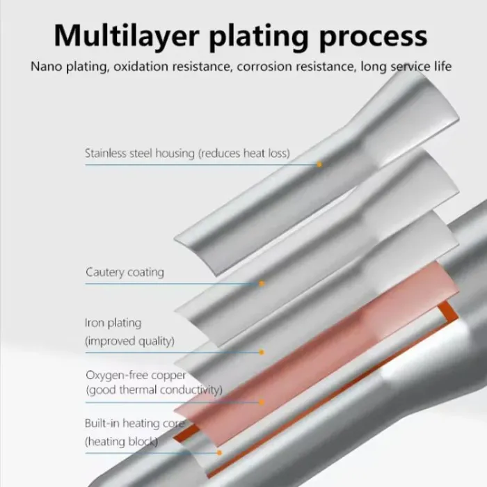 - Seamless integrated design, fast heat conduction, easy to tin, made of copper, instant heating, long service life
