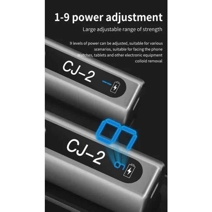 - 9 levels of power can be adjusted, suitable for various scenarios, suitable for facing the phone, watches, tablets, and other electronic equipment colloid removal