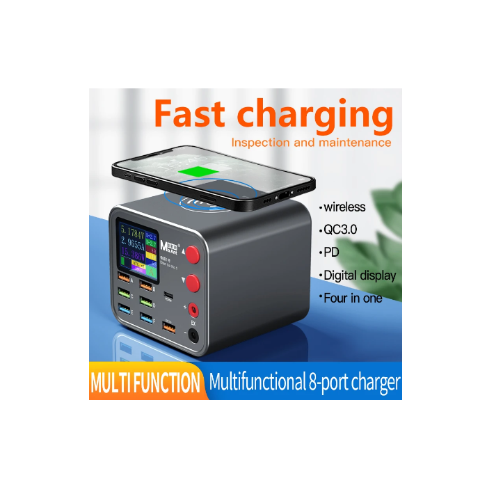 - The equipment has 6 high current charging ports and QC fast charging, PD 20W fast charging ports,10W wireless charging ports, etc charging port