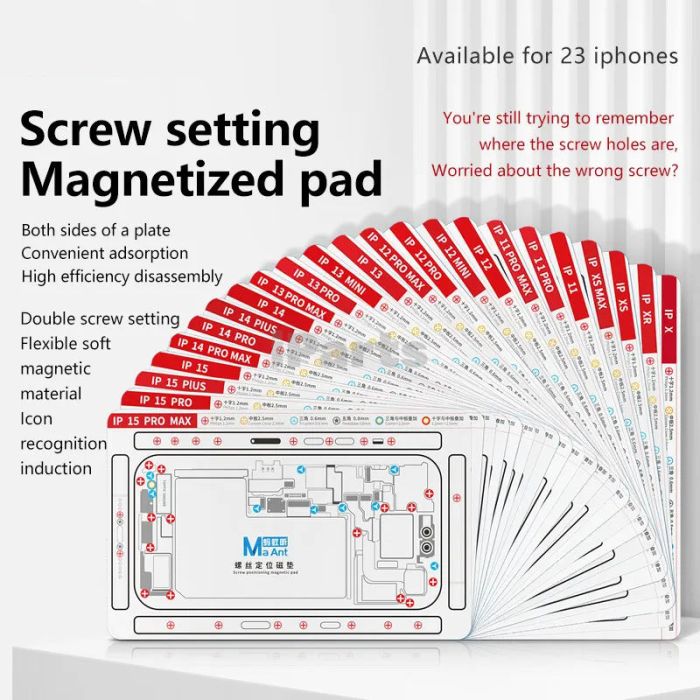 Higher quality screw positioning with magnetic pad, available for 23 phones, double-sided screw positioning, flexible soft magnetic material, icon recognition induction