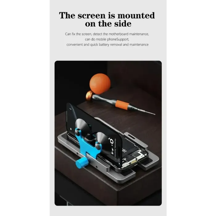 - The screen is mounted on the side, can fix the screen, detect the motherboard maintenance, can do mobile phone, support, convenient and quick battery removal, and maintenance