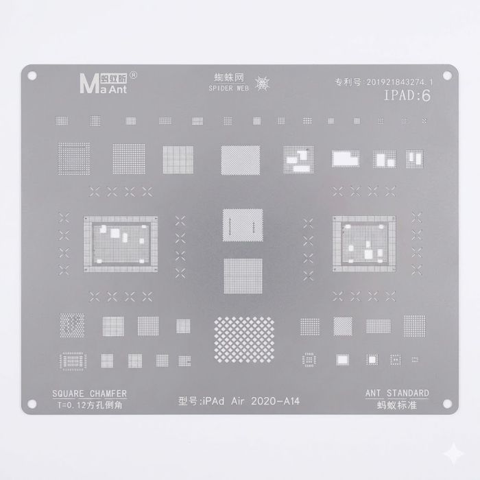 MaAnt iPad:6 0.12mm Square Chamfer BGA Reballing Stencil for iPad Air 2020-A14