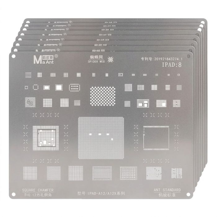 MaAnt iPad Series 8-in-1 0.12mm Square Chamfer BGA Reballing Stencil Set for iPad