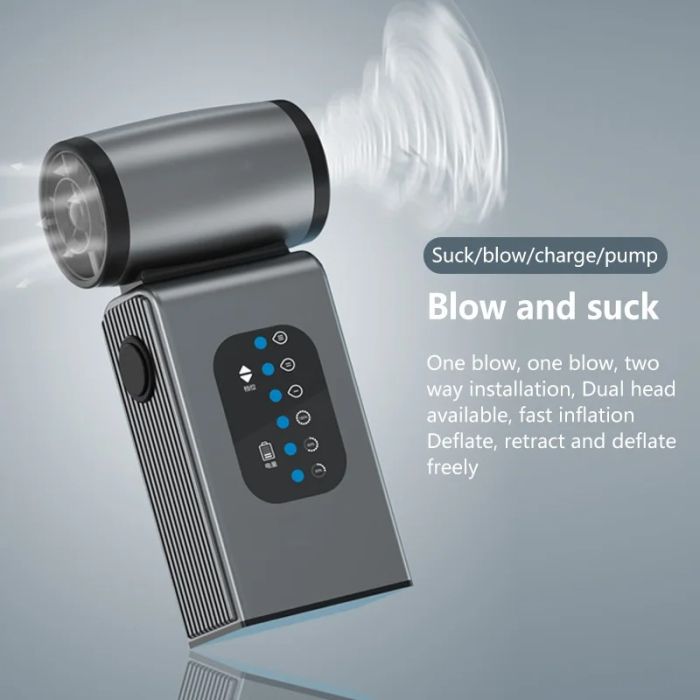 - Blow and suck, one blow and one suction, two-way installation, double head available, fast inflation and venting, retraction freely, suction, blowing and charging
