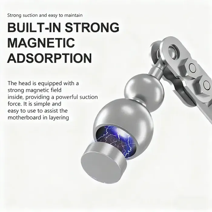- The head is equipped with a strong magnetic field inside, providing a powerful suction force. It is simple and easy to use to assist the motherboard in layering