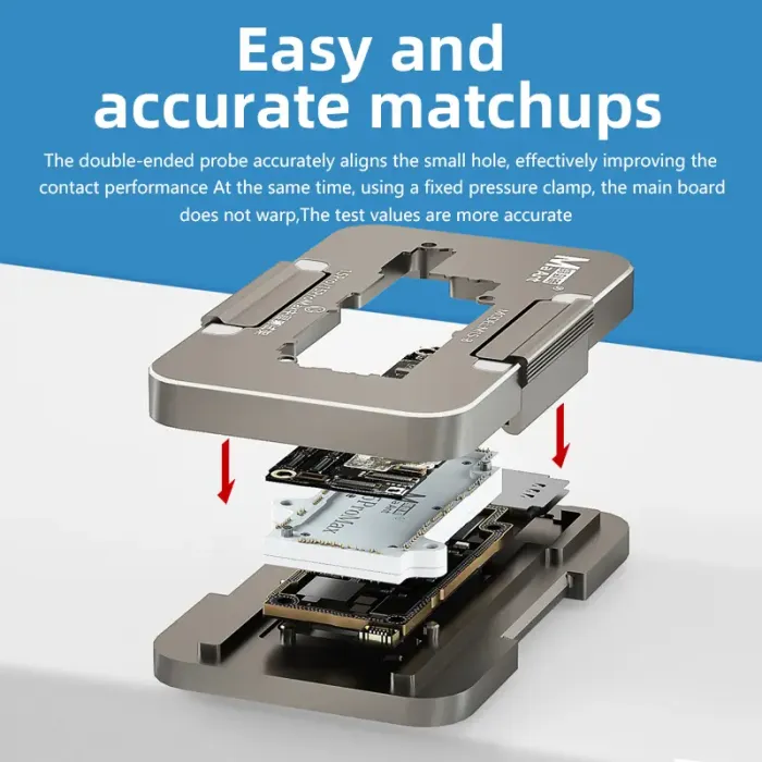 - The double-ended probe accurately aligns the small hole, effectively improving contact performance, at the same time, using a fixed pressure clamp, the main board does not warp, and the test values are more accurate