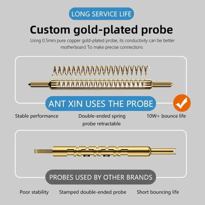 - Using a 0.5mm pure copper gold-plated probe, its conductivity can be the better motherboard, to make precise connections