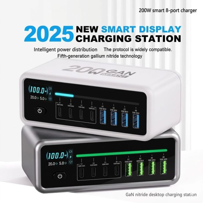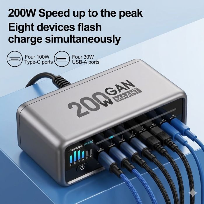 - 200W speed up to the peak, eight devices flash charge simultaneously, it meets the fast charging requirements of the vast majority of daily devices