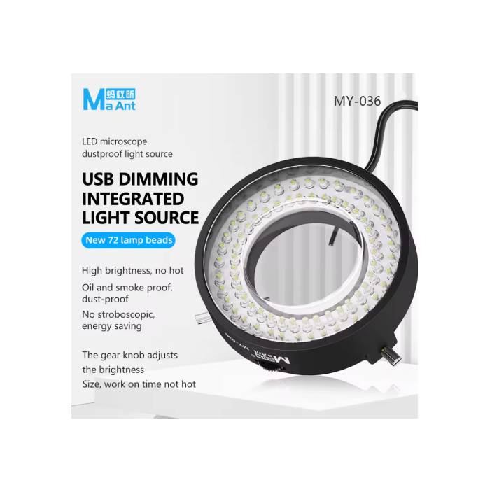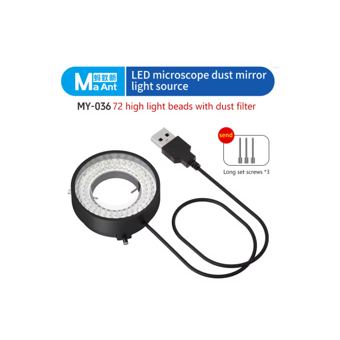 MaAnt MY-036 72 High Light Beads USB Microscope LED Ring Light with Dust Filter