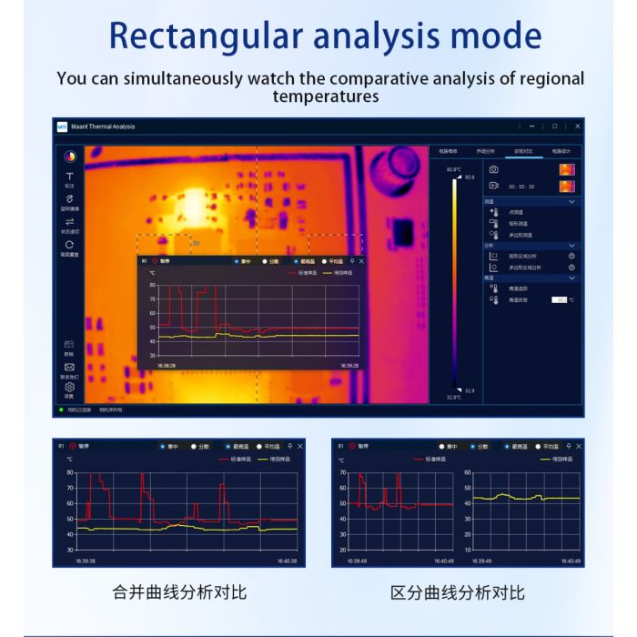 - In rectangular analysis mode, you can simultaneously watch the comparative analysis of regional temperatures