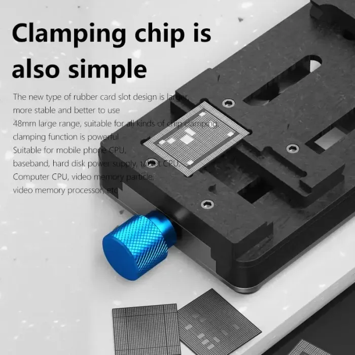 - The new type of rubber card slot design is larger, more stable, and better to use a 48mm large range, suitable for all kinds of chip clamping, clamping function is powerful