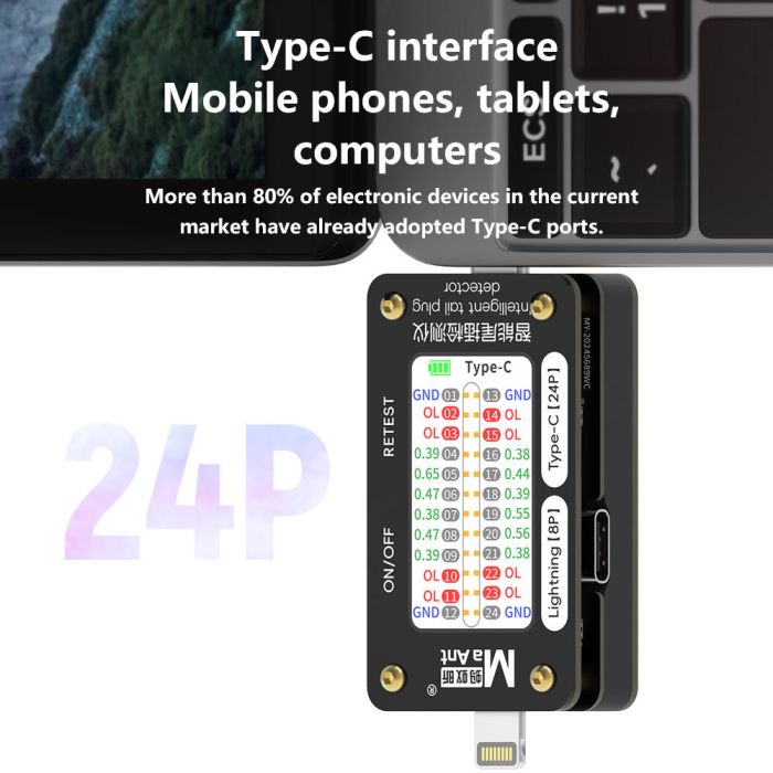 - Transparency intelligent tail insert detector, 8-Pin Lightning to 24-Pin Type-C