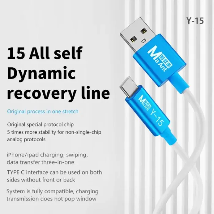 - Y-15 full-automatic recovery cable for iPhone/iPad charging, swiping, data transfer 3 in 1, no manual key press, full-automatic entry into recovery mode