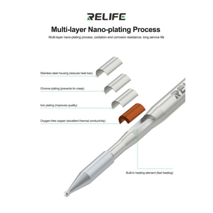 - Relife 210-BO C210 innovative ball tip design, integrated soldering iron tip and heater, even and fast soldering, full soldering, fast thermal conductivity, multi-layer plating