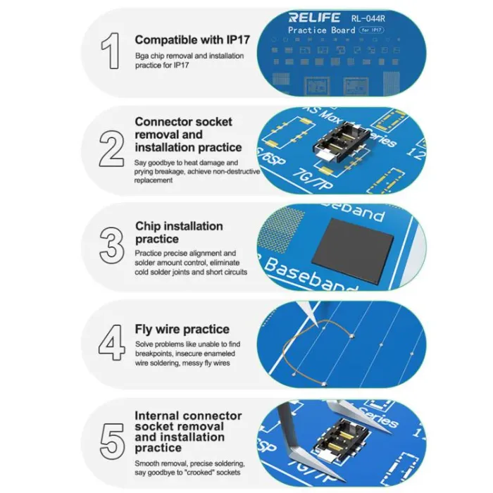 Relife RL-044R BGA Chip & Connector Socket Welding Test Pract CE Board Support iPhone 17 Series