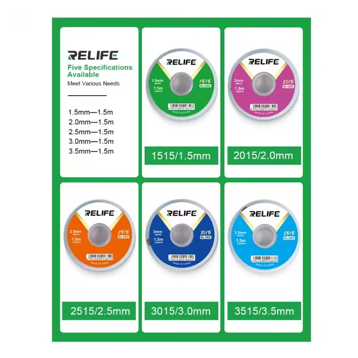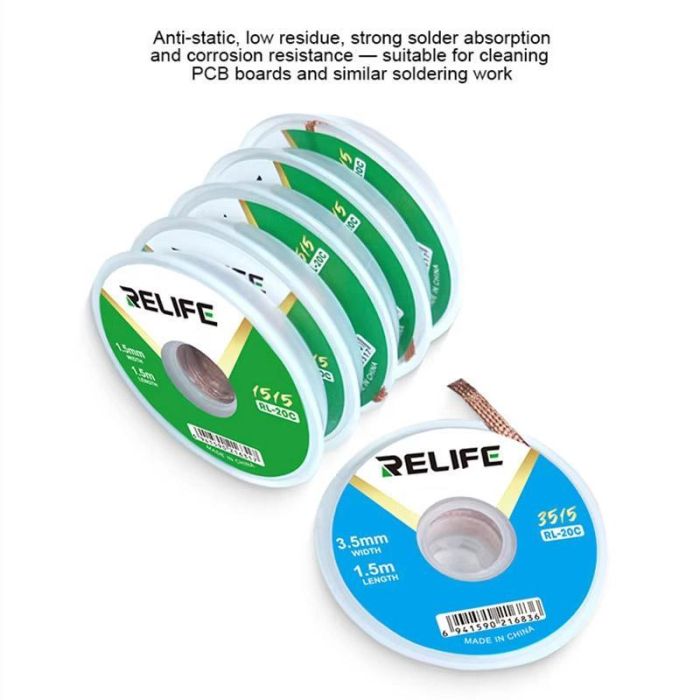 Relife RL-20C 1.5M Multiple Specifications Pure Copper Material Solder Wick for PCB Cleaning - 5Pcs