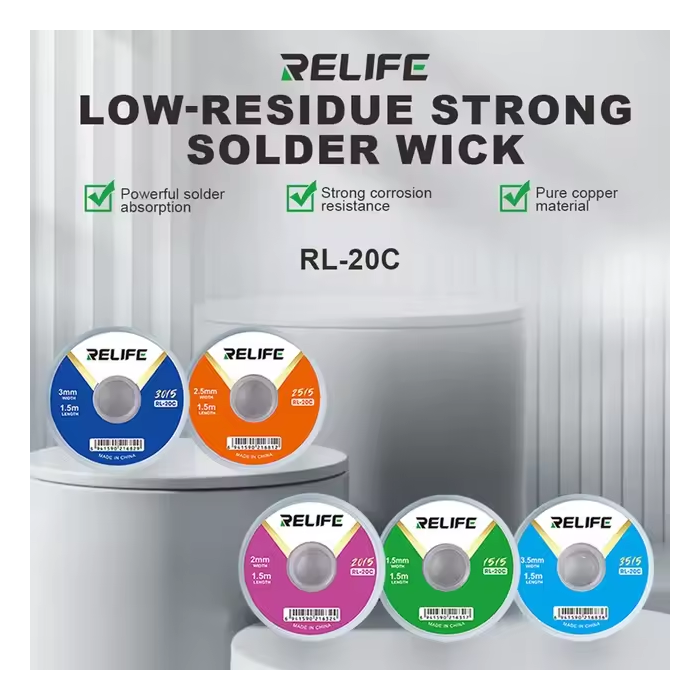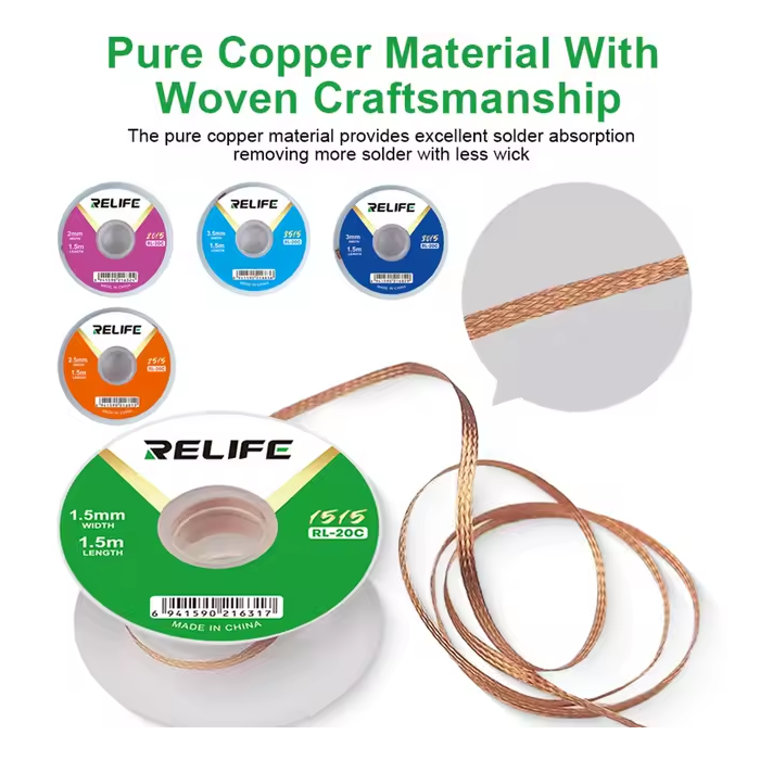 - RL-20C low-residue strong solder wick, powerful solder absorption, strong corrosion resistance, pure copper material