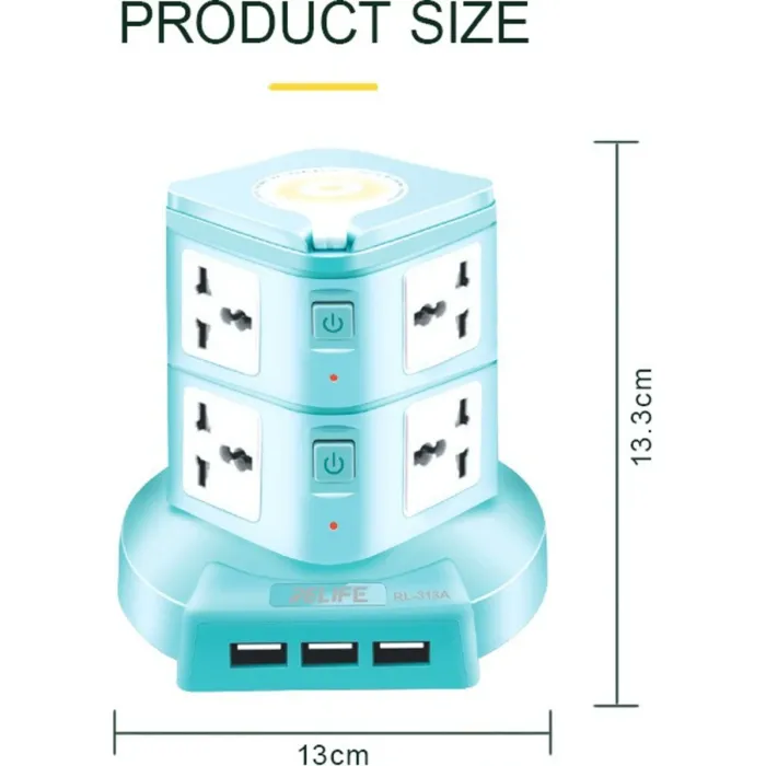 Relife RL-313A 10A Multi-function Smart Power Socket with 3 USB Fast Charge Port