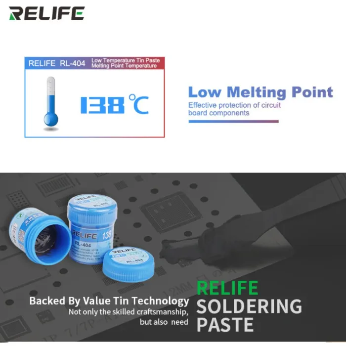 Relife RL-404 40g 138°C Low-Temperature Melting Point Lead-free Tin Paste for Mobile Phone BGA Repair