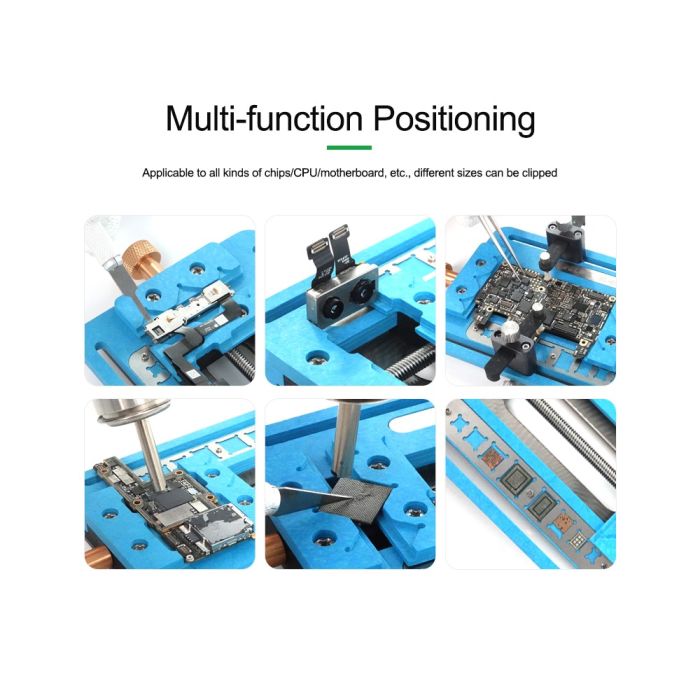 The RL-601F is a multi-purpose mobile phone motherboard repair fixture. It is a universal PCB holder that can be used for iPhone and Android mobile phones for IC's and Dot Matric Projector.