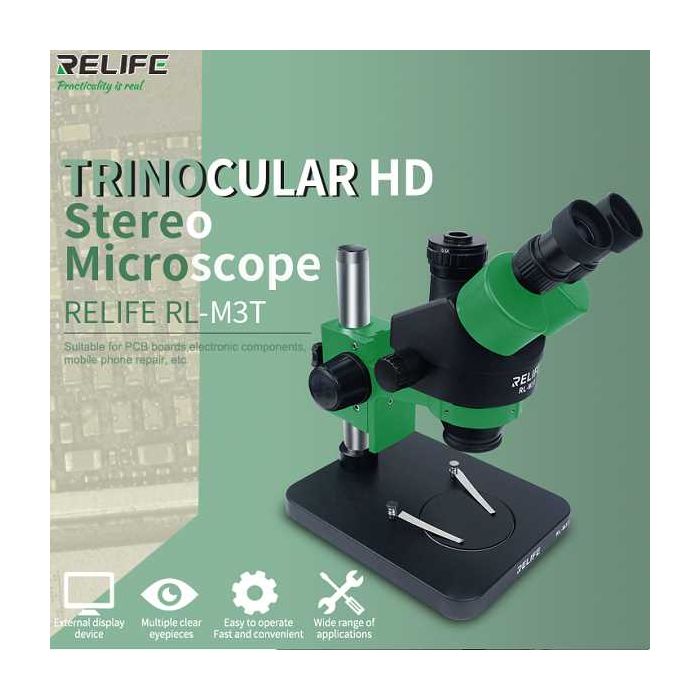 Relife RL-M3T 0.7-4.5X Trinocular HD Stereo Microscope - Green