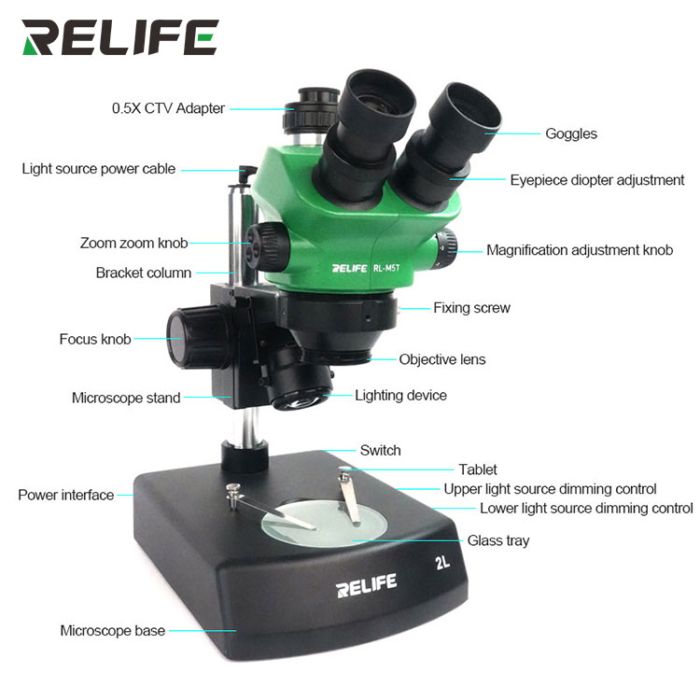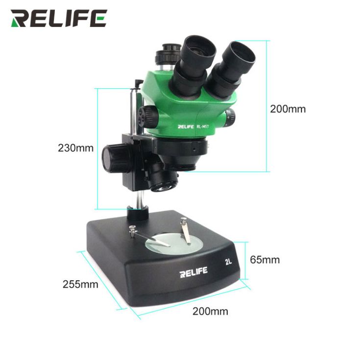 Relife RL-M5T-2L 0.7-5.0X Continuous Zoom Trinocular HD Stereo Microscope for PCB Repair Welding