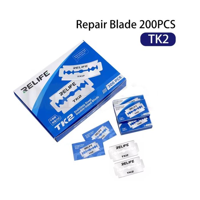 Relife TK2 Stainless Steel Double-Sided Blades for Screen Separation / Adhesive Removal / Cutting - 200Pcs