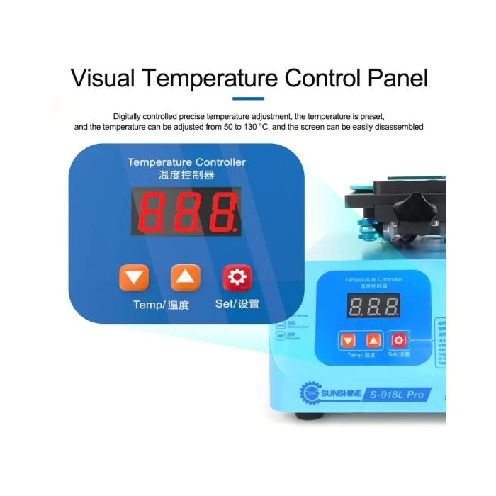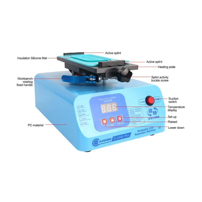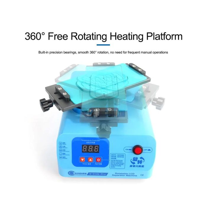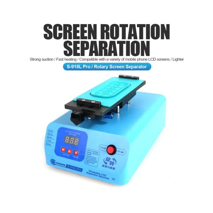 - Sunshine S-918L Pro rotary screen separator, strong suction, fast heating, compatible with a variety of mobile phone LCD screens, lighter, 8.5-inch work area, supports LCD screen separation under 8 inches
