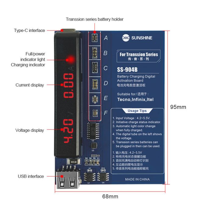 Sunshine SS-904B Transsion Series Battery Charging Digital Display Activation Board