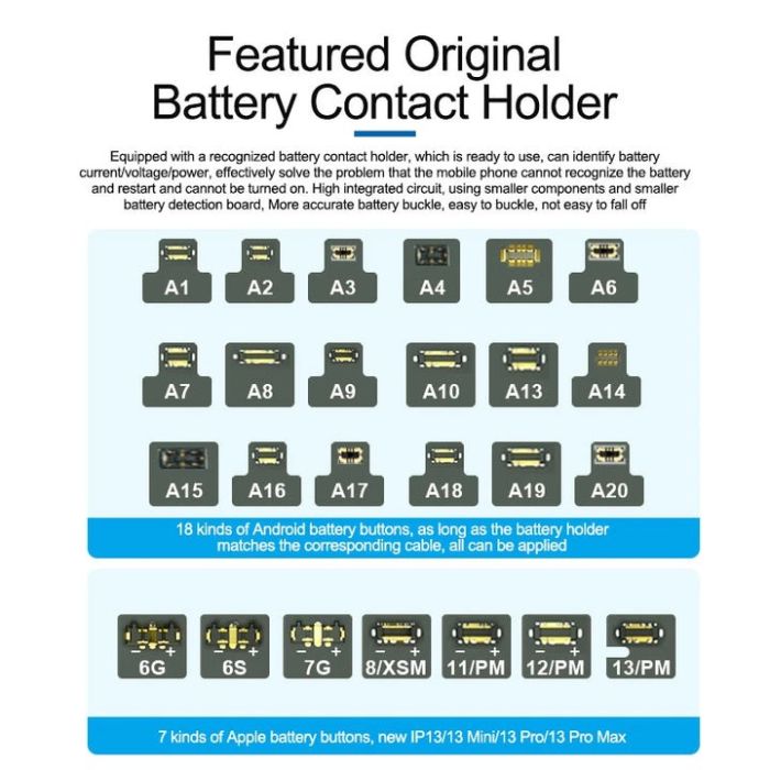 - Selected Original Battery Contact Holders: Highly integrated circuit, using smaller components, smaller battery detection board, more accurate battery buckle, easy to buckle, and not easy to fall off