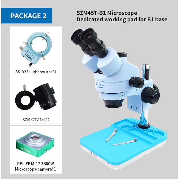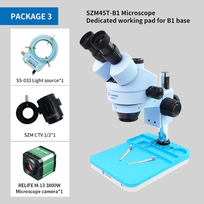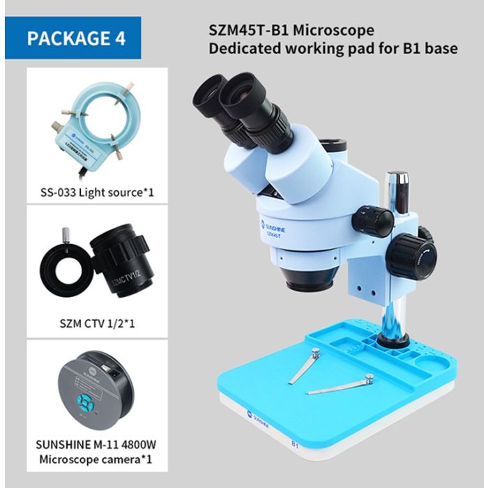 Sunshine SZM45T-B1 0.7-4.5X Continuous Zoom Trinocular HD Stereo Microscope with B1 Base